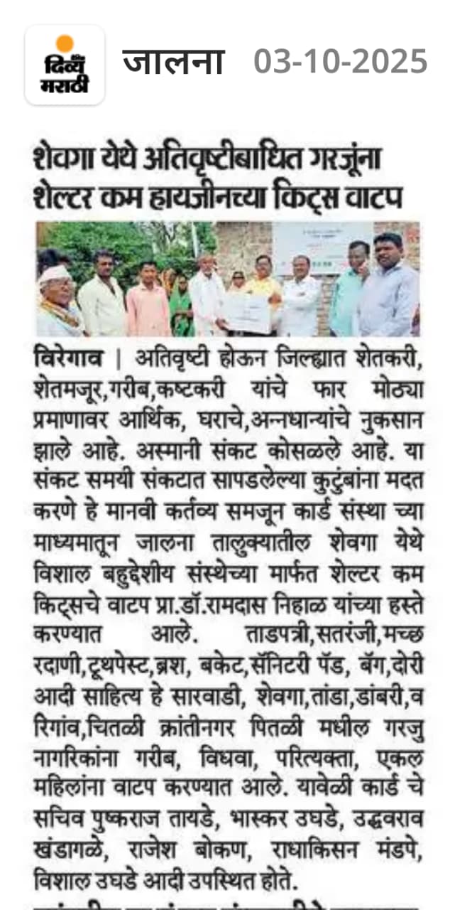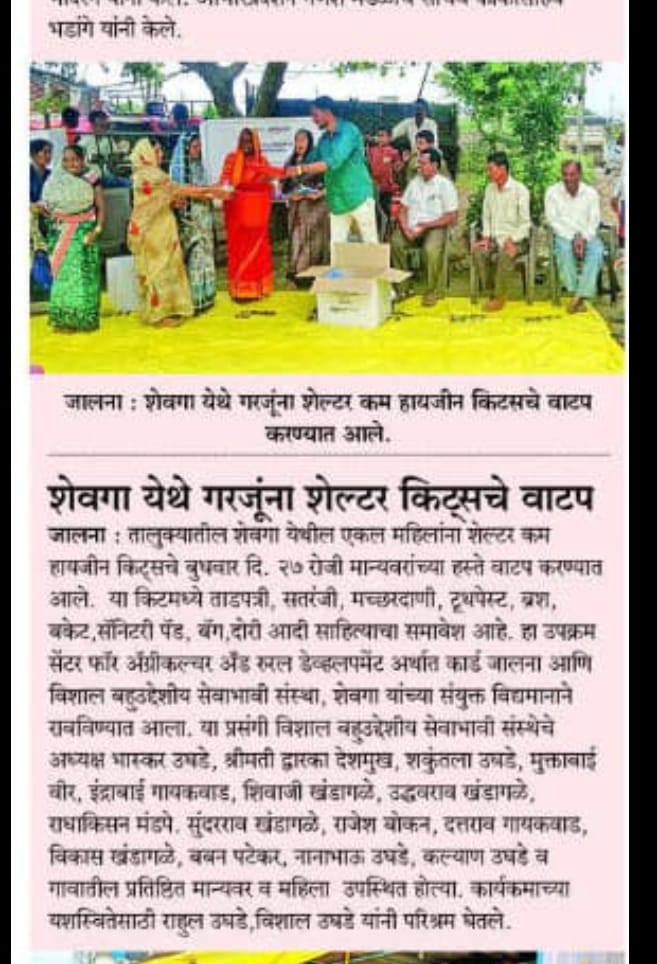विशाल बहुउद्देशीय सेवाभावी संस्था,शेवगा पो नेर ता. जि. जालना
